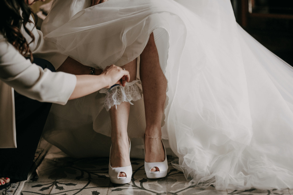 Today, the garter tradition is linked more to the dimension of fun, with the classic game of the groom who takes it off the thigh of his new bride in front of relatives and friends.